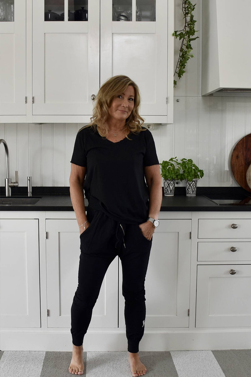 Bekväma stretchbyxor med mudd i midjan och trendigt häng.